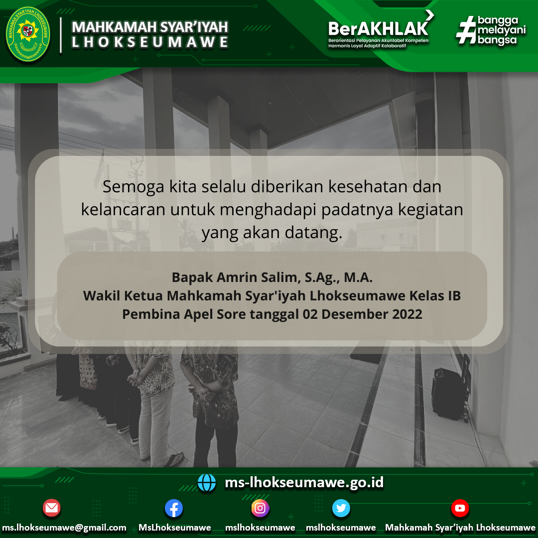 Apel Sore Mahkamah Syar’iyah Lhokseumawe Jum’at, 02 Desember 2022