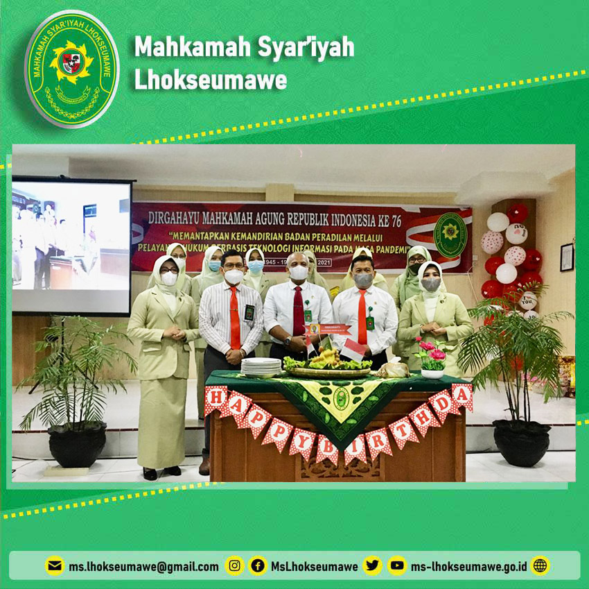 Acara Potong Tumpeng di Pengadilan Negeri Lhokseumawe dalam rangka Peringatan HUT Ke-76 Mahkamah Agung Republik Indonesia.