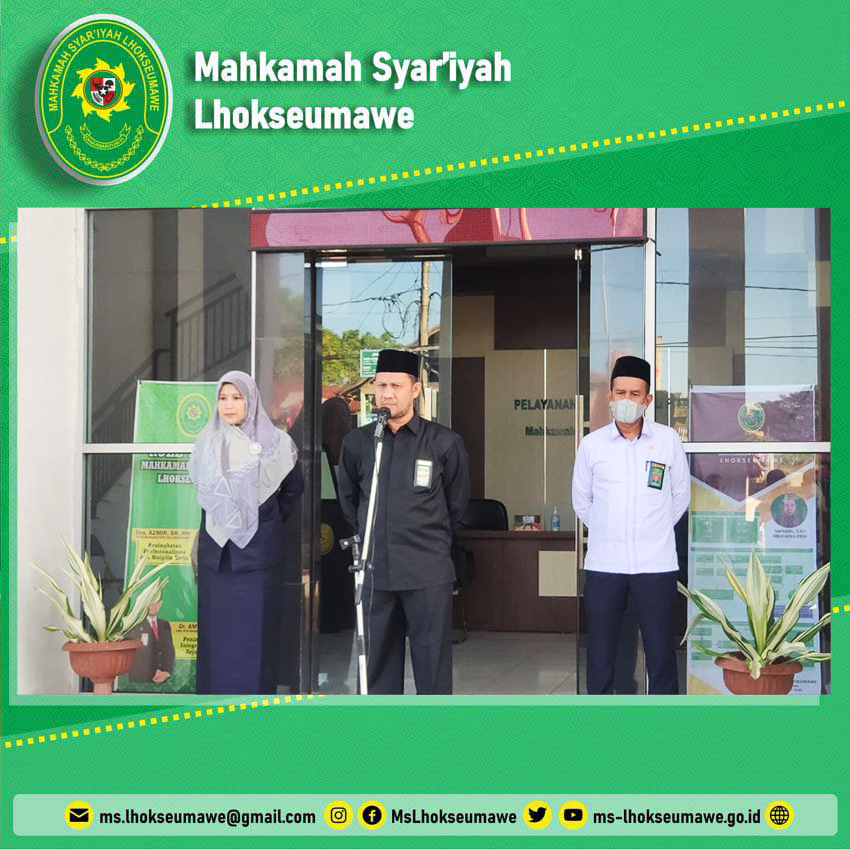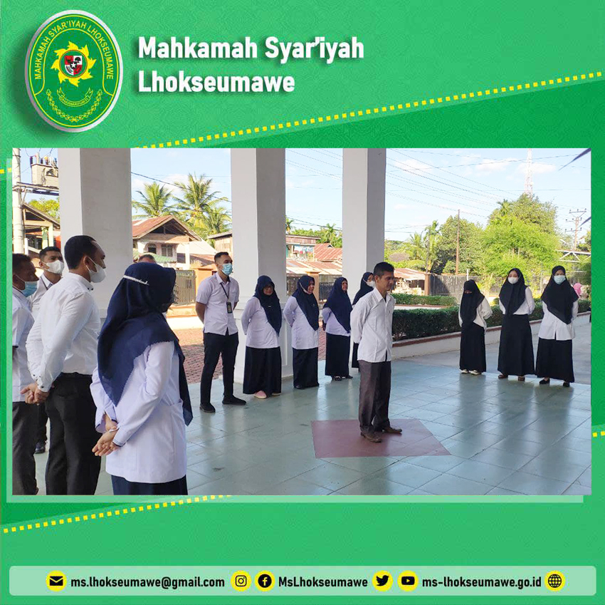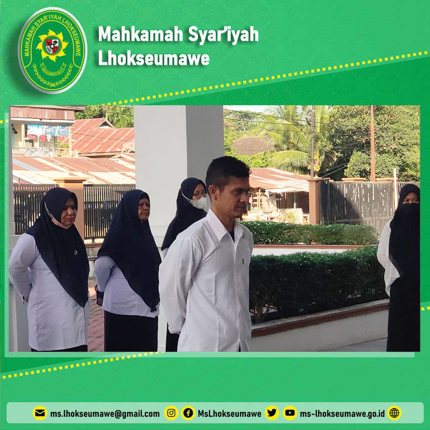APEL PAGI MAHKAMAH SYAR’IYAH LHOKSEUMAWE SENIN 13 DES 2021 Mon, 13 December 2021 APEL PAGI MAHKAMAH SYAR’IYAH LHOKSEUMAWE PEMBINA APEL : Dr. Amir Khalis (Wakil Ketua) Komandan Apel : Zardak (PPPNPN) Previous Post APEL SORE Mahkamah Syar’iyah Lhokseumawe Jum’at 10 Desember 2021 Next Post Rapat Pimpinan Mahkamah Syar’iyah Se-Aceh