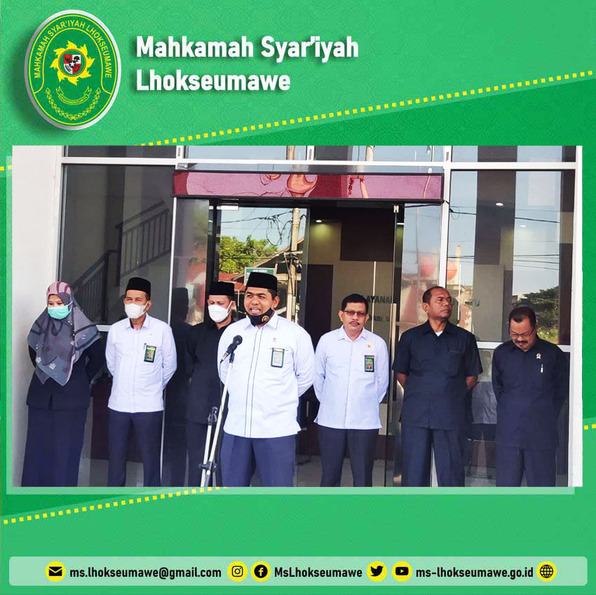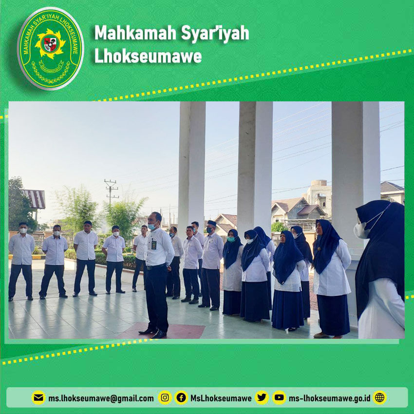 ms-lhokseumawe.go.id | Senin, 04 Oktober 2021, Bertempat di Halaman Utama Kantor Mahkamah Syar’iyah (MS) Lhokseumawe, telah dilaksanakan kegiatan rutin apel pagi tepat pukul 08.00 WIB. Bertindak sebagai pembina apel adalah Panitera MS Lhokseumawe Surya Darma, S.Ag, M.H. dan sebagai komandan apel adalah Safrizal, S.Hi. Apel pagi pada hari ini merupakan apel perdana Pak Panitera setelah sebelumnya jum’at 01 Oktober 2021 telah dilaksanakan Pelantikan dan Sumpah Jabatan. Pembina apel dalam amanatnya pada pagi hari ini berharap bisa memberikan kontribusi yang lebih baik lagi untuk meningkatkan pelayanan publik di MS Lhokseumawe dan mengajak seluruh aparatur MS Lhokseumawe untuk bekerja sama, kompak dalam pekerjaan, meningkatkan disiplin pekerjaan, fokus dalam menyelesaikan setiap pekerjaan dan peningkatan kinerja setiap aparatur ms lhokseumawe serta bertanggungjawab terhadap setiap pekerjaan yang diberikan. Selain itu, Pak Panitera juga berpesan kepada seluruh aparatur MS Lhokseumawe untuk mengutamakan kepentingan kantor daripada kepentingan pribadi, keluarga dan kelompok.