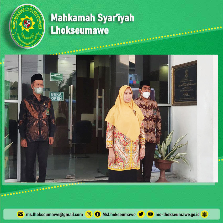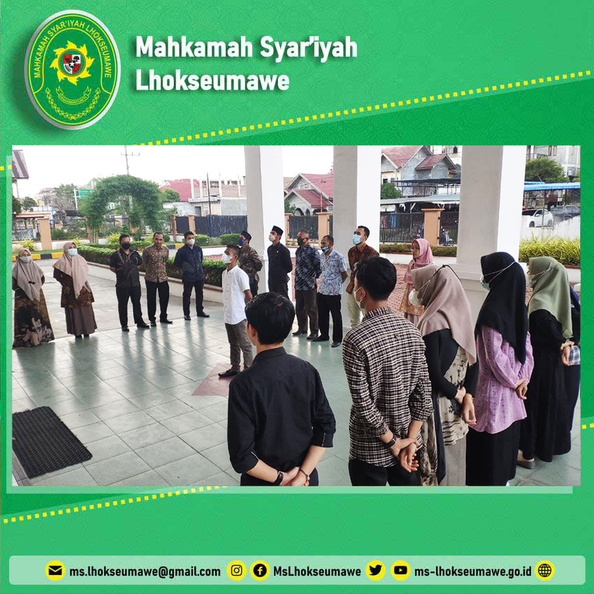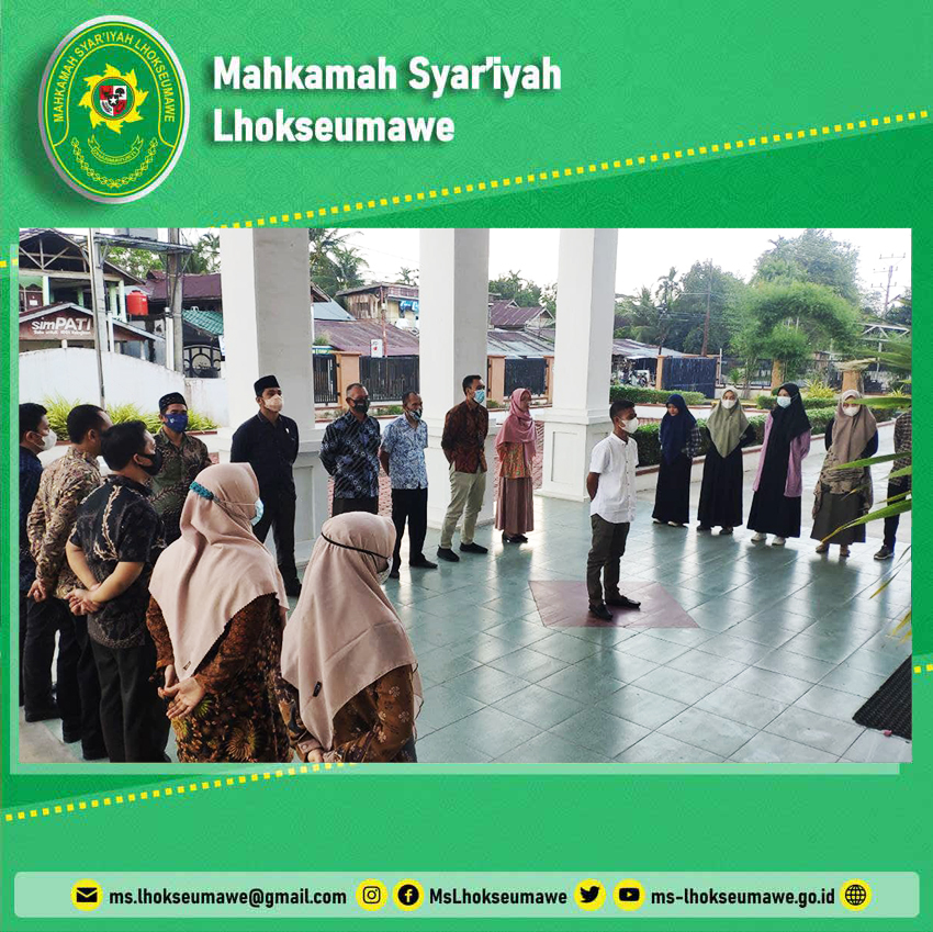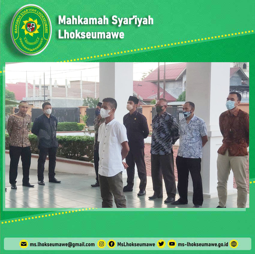 APEL SORE Mahkamah Syar’iyah Lhokseumawe Jum’at 10 Desember 2021 Fri, 10 December 2021 APEL SORE Mahkamah Syar’iyah Lhokseumawe Jum’at 10 Desember 2021 Pembina Apel : Wafa’, S.H.I, M.H. (Hakim) Komandan Apel : Ivanda Juniardi (PPNPN) Previous Post MS Lhokseumawe ikuti Bimbingan Teknis Administrasi Peradilan Next Post APEL PAGI MAHKAMAH SYAR’IYAH LHOKSEUMAWE SENIN 13 DES 2021
