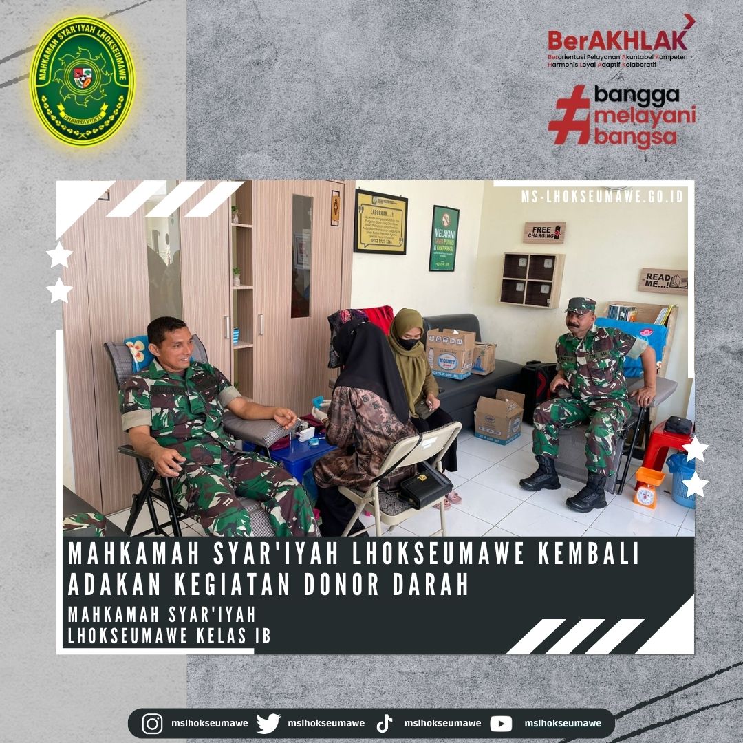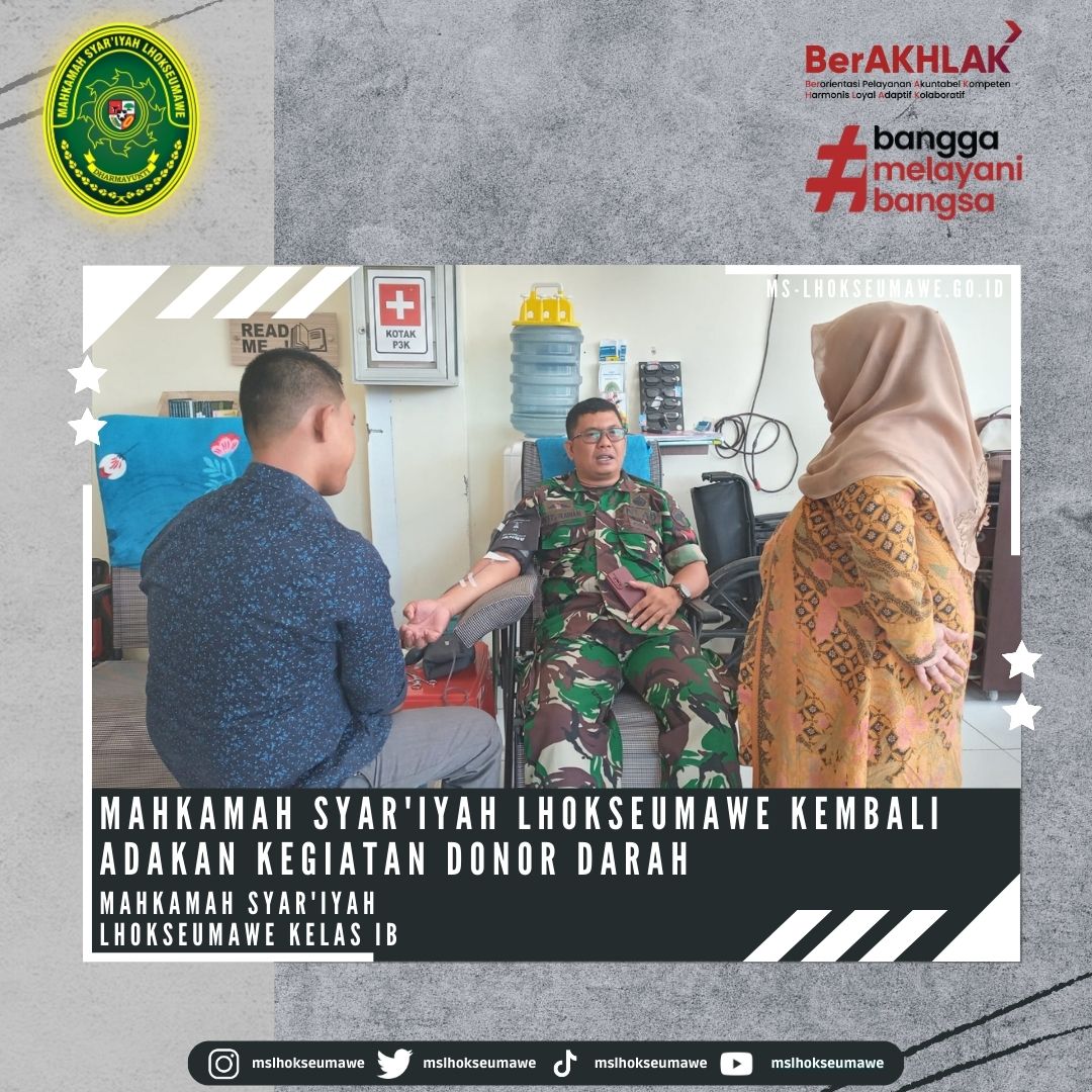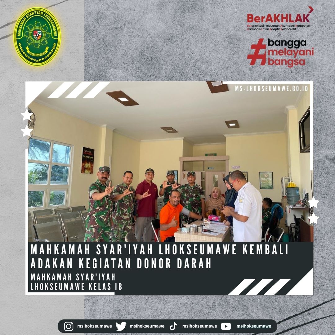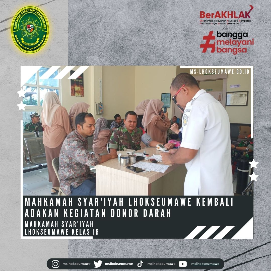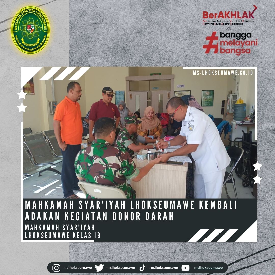 Mahkamah Syar’iyah Lhokseumawe kembali adakan kegiatan Donor Darah.