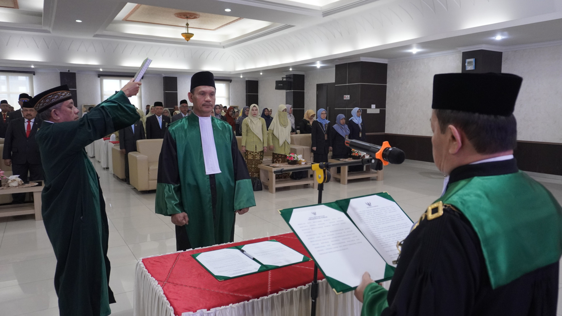 Prosesi khidmat ini dipimpin langsung oleh Ketua Mahkamah Syar’iyah Aceh, Yang Mulia Dr. H. Zulkifli Yus, M.H., selaku pejabat yang mengambil sumpah dan melantik. Acara ini turut dihadiri oleh jajaran pimpinan Mahkamah Syar’iyah dari berbagai wilayah di Aceh.