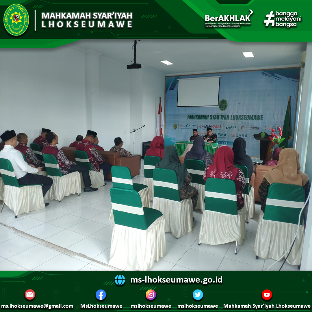 Kegiatan dibuka oleh Ketua MS Lhokseumawe Yedi Suparman, S.H.I, M.H. dengan membaca basmalah dan ucapan syukur kepada Allah SWT serta dilanjutkan dengan gambaran umum terkait Rutinitas Hakim Tinggi Pembina dan Pengawas Daerah (HATIBINWASDA) Mahkamah Syar’iyah Aceh salah satunya yaitu melakukan pembinaan dan pengawasan terhadap satuan kerja di wilayah yurisdiksinya.