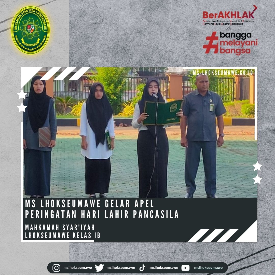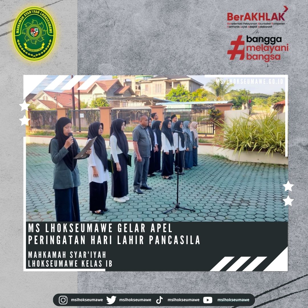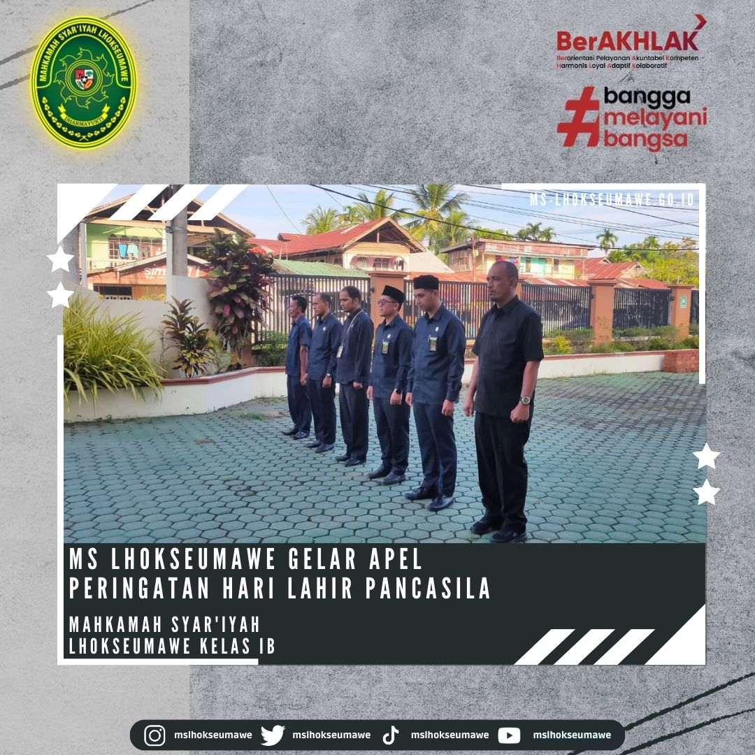Mahkamah Syar’iyah Lhokseumawe Gelar Apel Peringatan Hari Lahir Pancasila.