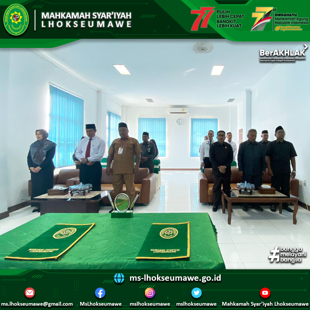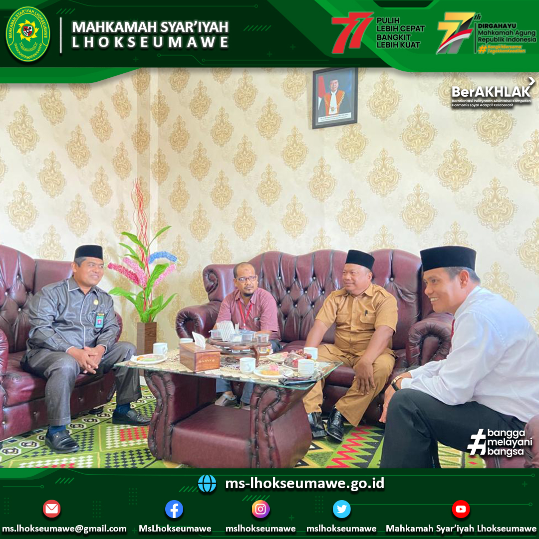 Tepat pukul 10.00 WIB, rombongan dari Sekolah Luar Biasa Aneuk Naggroe Lhokseumawe tiba di Mahkamah Syar’iyah Lhokseumawe. Kedatangan rombongan yang dipimpin langsung oleh Bapak Samhudi, S.Pd. ini disambut dengan antusias oleh Keluarga Besar MS Lhokseumawe, adapun maksud dan tujuan dari kedatangan mereka adalah untuk memenuhi undangan penandatanganan MoU tentang kesepakatan melakukan kerja sama dalam bentuk penyediaan layanan bagi penyandang disabilitas.