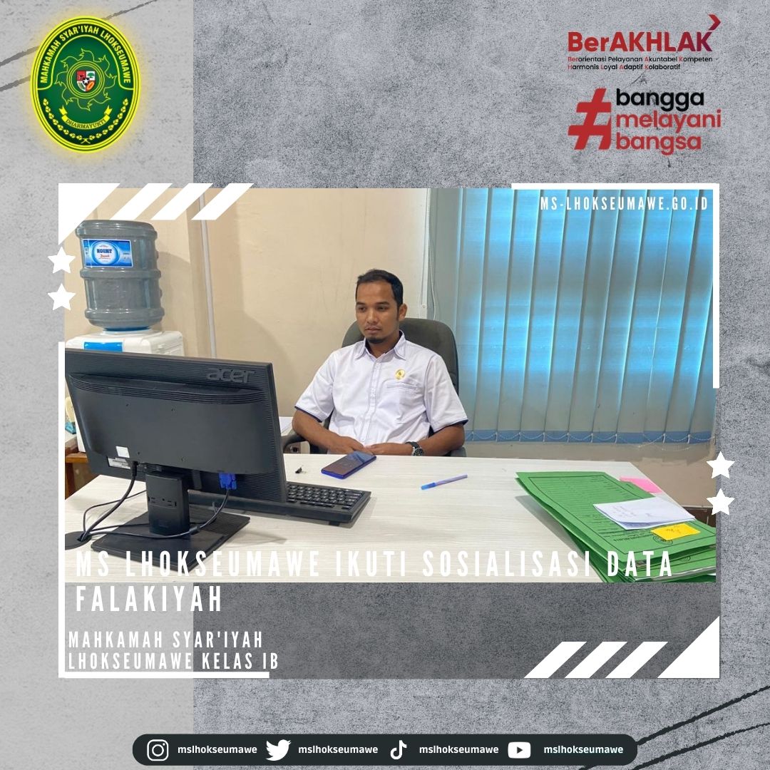 Dalam Rangka menyambut Hari Raya Idul Fitri 1444 H dan menindaklanjuti hasil Musyawarah Kerja ahli Hisab Kementerian Agama RI, Bapak M. Iqbal, S.H.I. yang mewakili Ketua MS Lhokseumawe menghadiri secara daring undangan Dirjen Badilag MA-RI terkait dengan Sosialisasi Penerapan Kriteria Imkanur Rukyah Baru MABIMS.