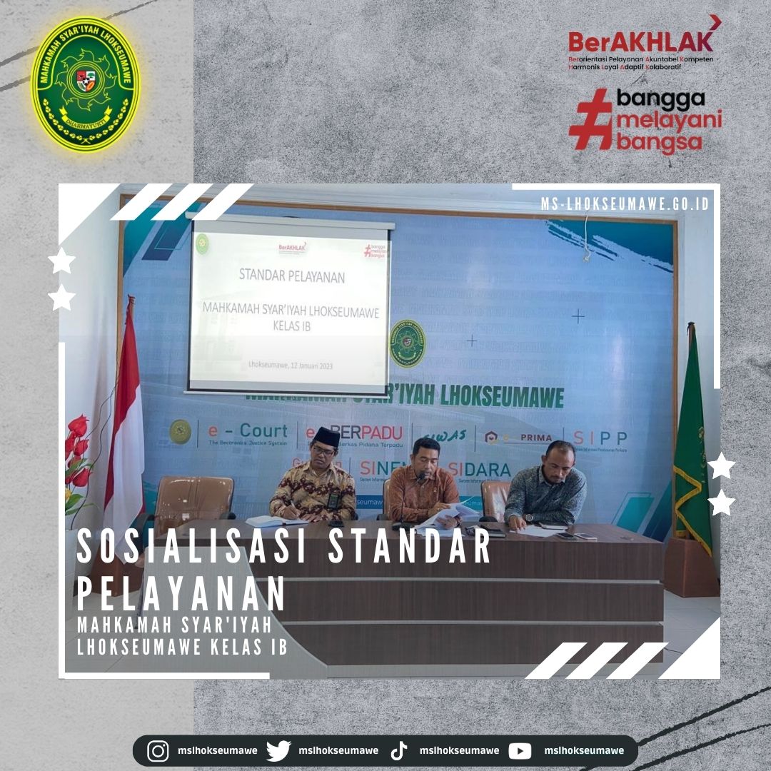 MS Lhokseumawe laksanakan Sosialisasi Standar Pelayanan Thu, 12 January 2023 MS Lhokseumawe laksanakan Sosialisasi Standar Pelayanan Lhokseumawe, 12 Januari 2023 #mslhokseumawe #msaceh #ditjenbadilag #humasmahkamahagung Previous Post Sosialisasi Disiplin Kerja di Lingkungan Mahkamah Syar’iyah Lhokseumawe Next Post Monitoring dan Evaluasi Standar Operasional Prosedur di Lingkungan Mahkamah Syar’iyah Lhokseumawe