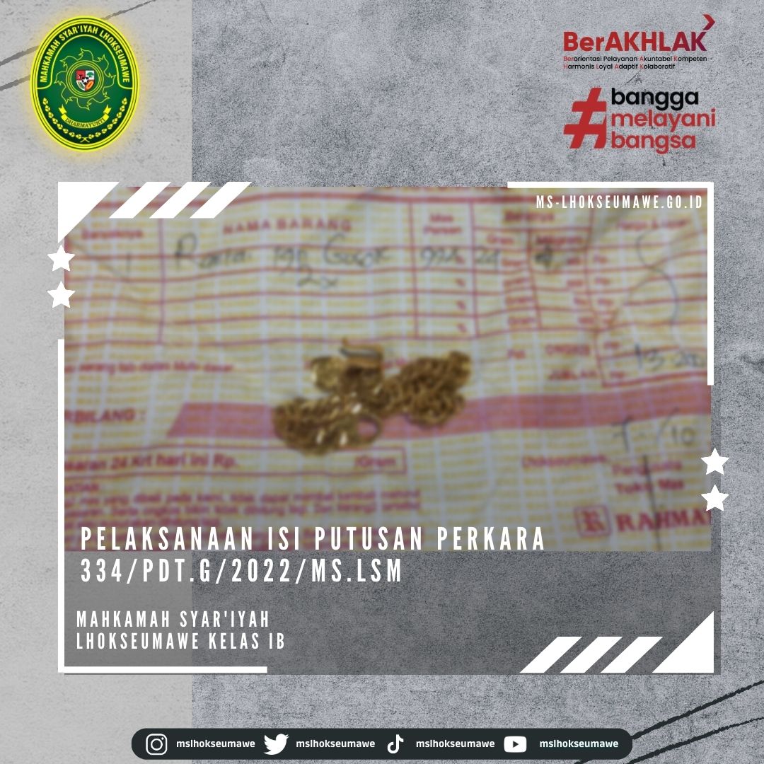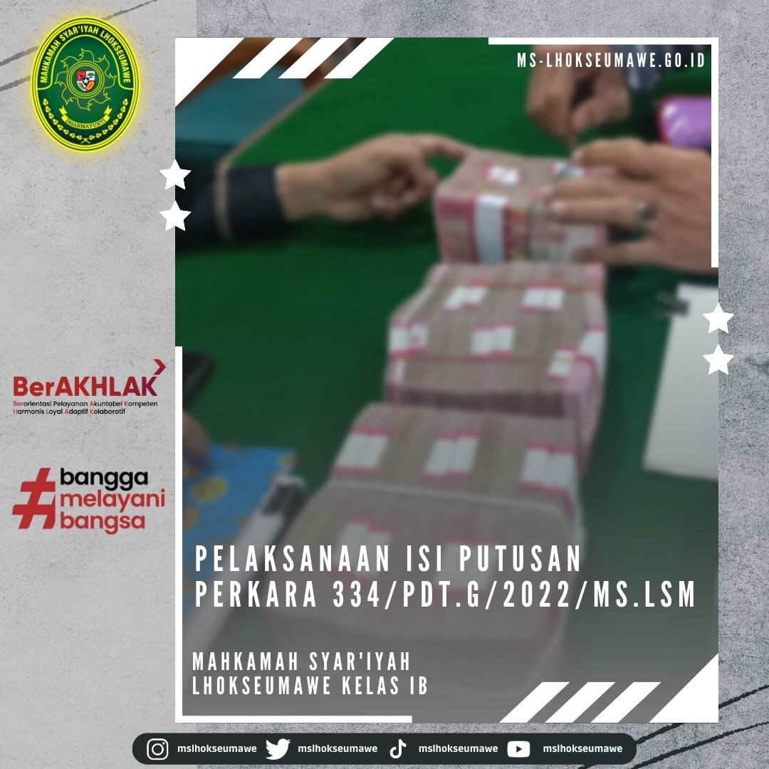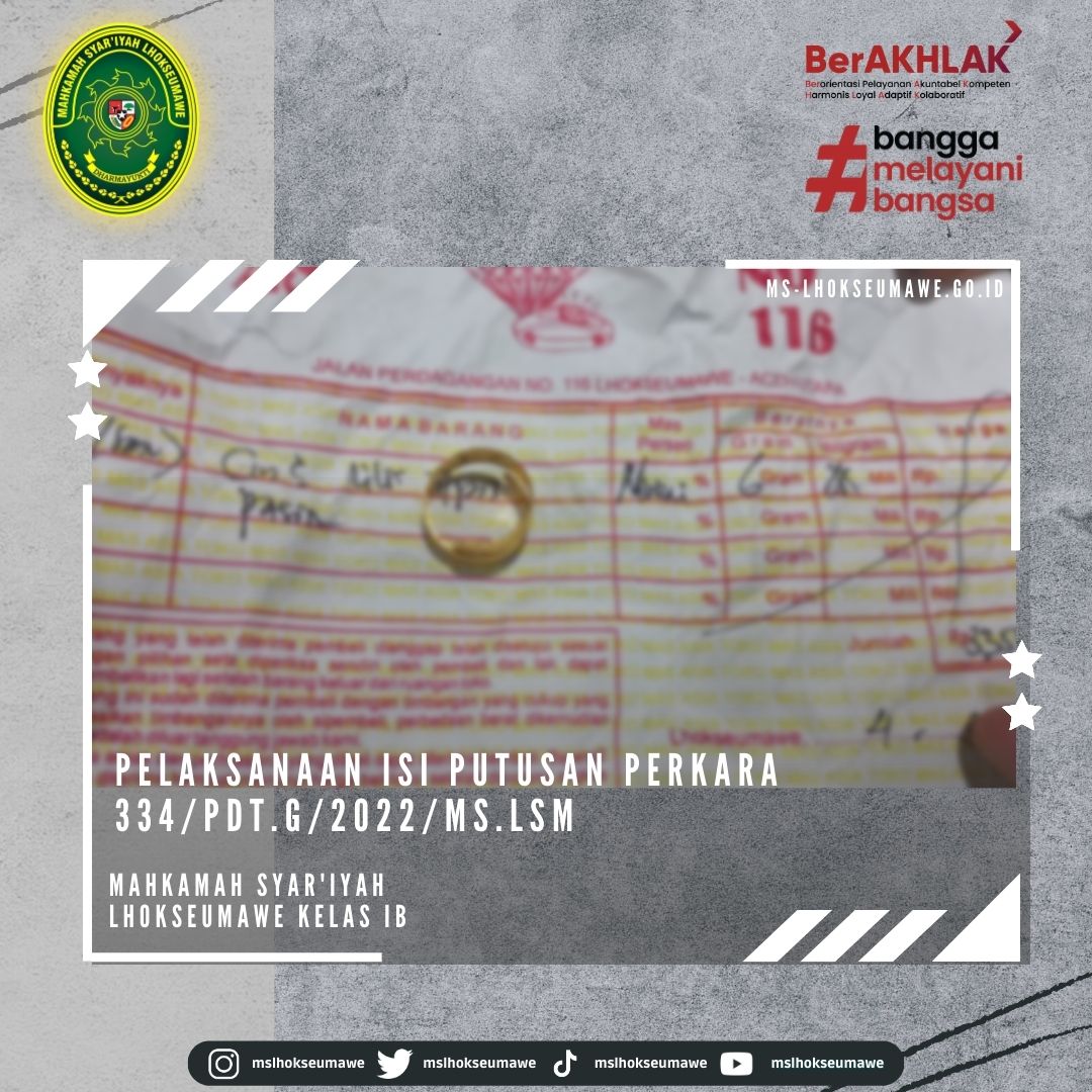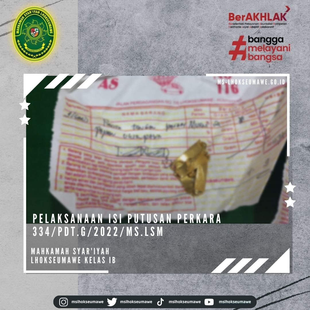 Pelaksanaan isi putusan Perkara 334/Pdt.G/2022/MS.Lsm