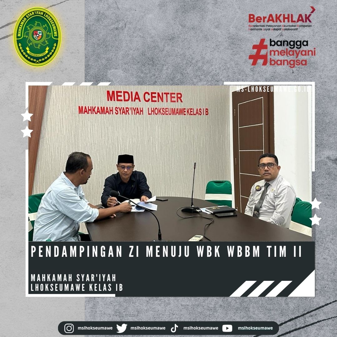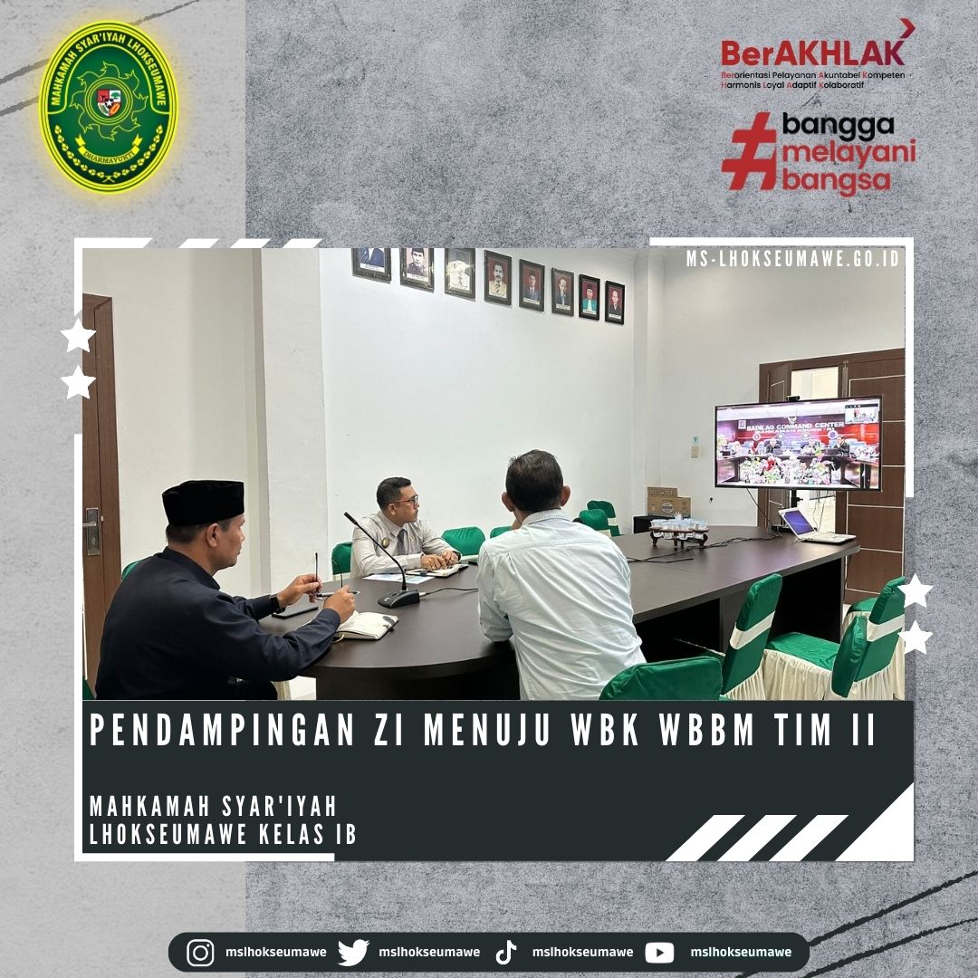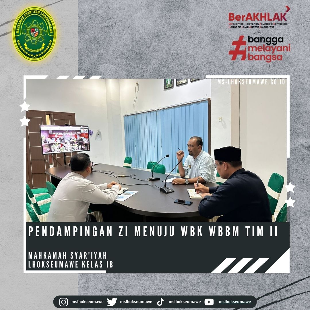 Ketua MS Lhokseumawe Bapak Yedi Suparman, S.H.I, M.H. didampingi Wakil Ketua Bapak Amrin Salim, S.Ag, M.A. dan Sekretaris Bapak Yarvis Luthfi, S.H. ikuti secara daring Pendampingan ZI menuju WBK Tim II.