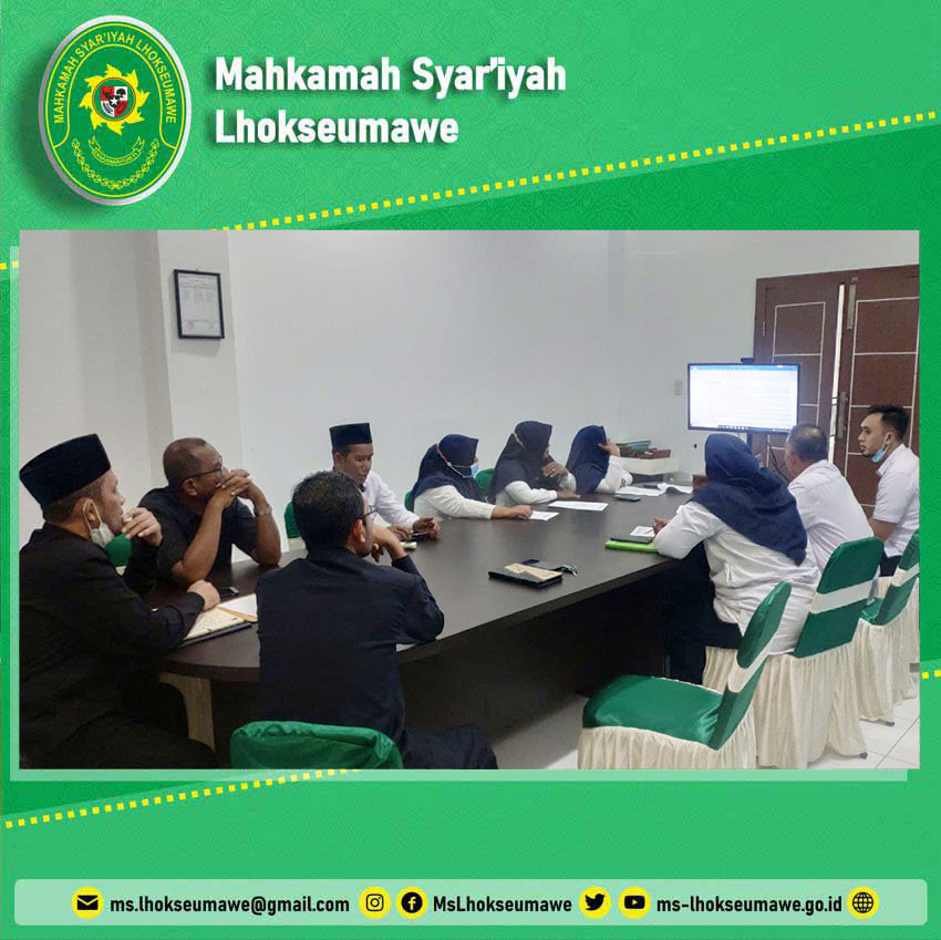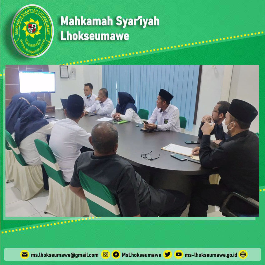 ms-lhokseumawe.go.id | Senin 20 September 2021 – Bertempat di Ruang Media Center Mahkamah Syar’iyah Lhokseumawe, telah dilaksanakan Rapat Evaluasi Job Description PPNPN tahap 2 (dua). Dipimpin langsung oleh Wakil Ketua MS Lhokseumawe Dr. Amir Khalis dan dihadiri oleh Hakim Drs. Iskandar, M.H., Drs. Ahmad Luthfi, Sekretaris Syarbaini, S.Ag, Plt. Panitera Drs. Syamsul Bahri, Para Panitera Muda, dan Para Kasubbag serta Plt. Kasubbag Kepegawaian, rapat ini membahas tahapan lanjutan yang lebih mendalam sesuai dengan feedback dan masukan dari para pimpinan, baik yang bersifat evaluasi ataupun improvement. Implementasi dari hasil rapat ini rencananya akan dilaksanakan evaluasi dan pembinaan kepada PPNPN tersebut pada pertengahan October 2021.