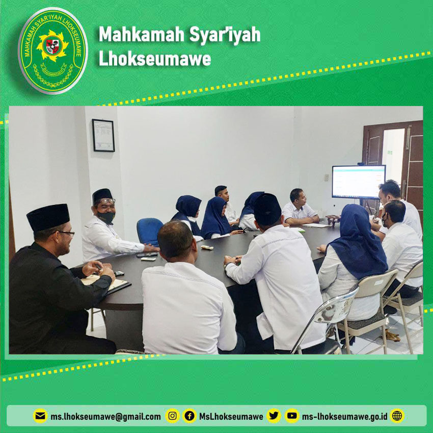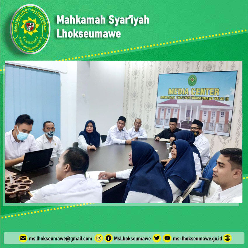 ms-lhokseumawe.go.id | Senin, 04 Oktober 2021 – Bertempat di Ruang Media Center Mahkamah Syar’iyah (MS) Lhokseumawe telah dilaksanakan Rapat Koordinasi Evaluasi APM 2021. Dipimpin langsung oleh Ketua APM (Wakil Ketua MS Lhokseumawe) Dr. Amir Khalis, M.Ag dan dihadiri oleh Panitera Surya Darma, S.Ag, M.H., Sekretaris Syarbaini, S.Ag, Para Kasubbag, Para Panmud, dan Pegawai MS Lhokseumawe rapat evaluasi ini bertujuan untuk membahas hal-hal yang menjadi perhatian sehingga bisa diperbaiki dan ditingkatkan lagi kedepannya.