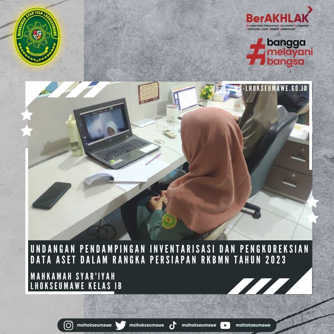 Pengelola BMN MS Lhokseumawe Sdr. Fatimah, A.Md. ikuti secara daring Undangan Pendampingan Inventarisasi dan Pengkoreksian Data Aset Dalam Rangka Persiapan RKBMN Tahun 2023 yang diselenggarakan oleh Biro Perlengkapan BUA MA-RI.